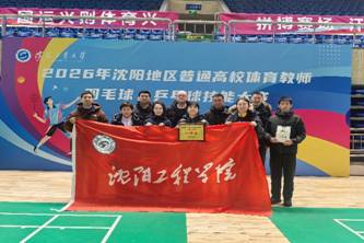 2026年1月10日,沈阳地区普通高等学校体育教师羽毛球、乒乓球技能大赛在沈阳工业大学体育馆举行,本次羽毛球、乒乓球技能大赛均为团体赛。代表我校参赛的14名教师在比赛中斗志昂扬,顶住压力,将训练成果完美转化为赛场表现,最终在乒乓球技能大赛中取得冠军,羽毛球技能大赛中取得季军,展现了沈阳工程学院体育教师过硬的专业能力和积极的精神面貌。